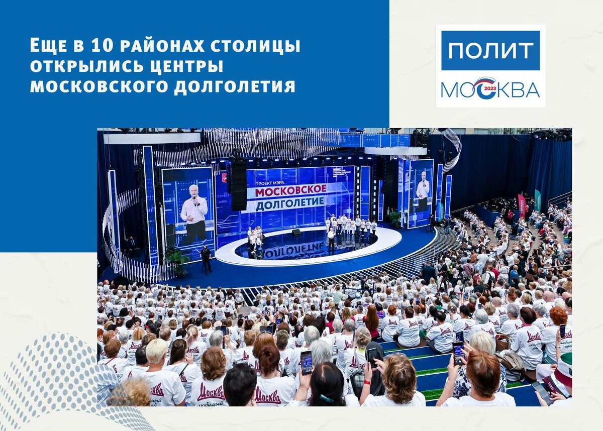 Еще в 10 районах столицы открылись центры московского долголетия В 2018 году по инициативе Сергея Собянина был создан городской проект «Московское долголетие», нацеленный на то, чтобы помочь старшему поколению поддерживать активный и здоровый образ жизни, создать максимум возможностей для самореализации москвичей «серебряного» возраста. В его рамках были открыты группы, секции и курсы по трем основным векторам — образовательному, спортивному и творческому. Сергей Собянин посетил площадку Московского урбанистического форума в Гостином Дворе, где пообщался с членами ассоциации клубов долголетия. На встрече, в которой приняли участие около тысячи человек, он объявил об открытии 10 новых центров московского долголетия в районах: «Спасибо за десятилетия труда на благо нашей страны, нашего города, за то, что вы сделали ради будущего и настоящего России. Спасибо за ваших дочерей и сыновей, которых вы вырастили. Спасибо за внуков, которых вы растите, — сказал Сергей Собянин, обращаясь к участн