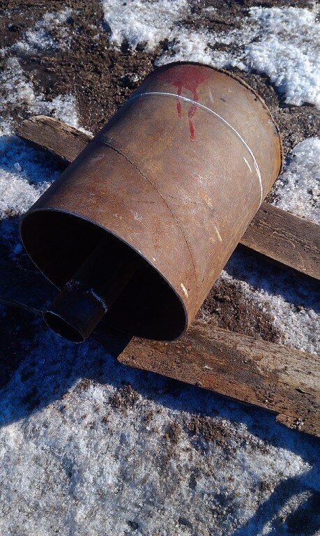 Товарищ подогнал мне котел самодельный из 400 трубы стенкой 4мм.