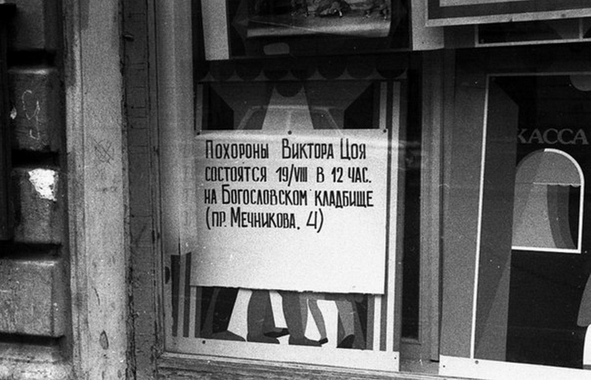 За год до событий путча на Богословском кладбище Ленинграда состоялись похороны Цоя. В полдень к воротам кладбища подъехал автобус, из Латвии привезли гроб с останками погибшего Виктора. Его хоронили в закрытом гробу, который был обит темно-синим бархатом. Гражданскую панихиду на кладбище не проводили, ее заменила выставка, сооруженная на кладбищенской стене. Там были фотографии, плакаты, рисунки, значки и стихи – посвящения, склоненные флаги. Вокруг стояла огромная толпа народа у всех траурные ленты, магнитофонами и гитарами. Со всех сторон звучала музыка Цоя и рыдание людей. После траурной церемонии в Москве стали распространяться слухи о том, что эта авария не была случайной, что это было настоящее покушение. Тогда, в 1990-ом версию о преднамеренном убийстве активно поддерживал продюсер «Кино» Юрий Белишкин, он утверждал, что следствие откровенно завалено. Расследование, действительно, было проведено наспех, но родственники погибшего не стали настаивать на чем-то ещё, они довольство