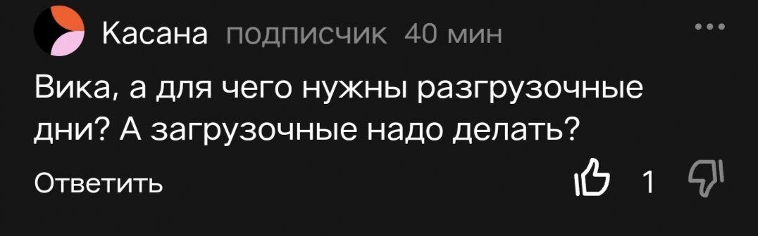 Доброго дня, друзья! Меня часто спрашивают, зачем я делаю разгрузочные дни и нужны ли они, а также что такое "загрузочные" дни. Друзья, думаю, что уже не осталось наверное никого, кто бы верил в магию волшебных жиросжигающих продуктов и дней на молокочае или кефирчике, способных "спалить" кило жира. Чтобы вы понимали, даже если вы супер-спортивная девушка с высокой скоростью метаболизма, то даже на полном голодании у вас не получится сжечь больше, чем 200 гр жира за день. Все остальное - вода! Хочется вам голодать ради литра воды? Точно также я уверена в том, что наверное все уже знают, что похудеем мы или нет зависит исключительно от того, получится ли у нас создать дефицит энергии за неделю или нет. ☑️И создать этот дефицит можно на одинаковом калораже ☑️Или на плавающем калораже Поскольку я сейчас принимаю гормональные таблетки, то у меня бывают дни буквально неконтролируемого аппетита. Я в эти дни не терплю - ем больше. Но сглаживаю переедание за счёт дня пониженных калорий. Второ