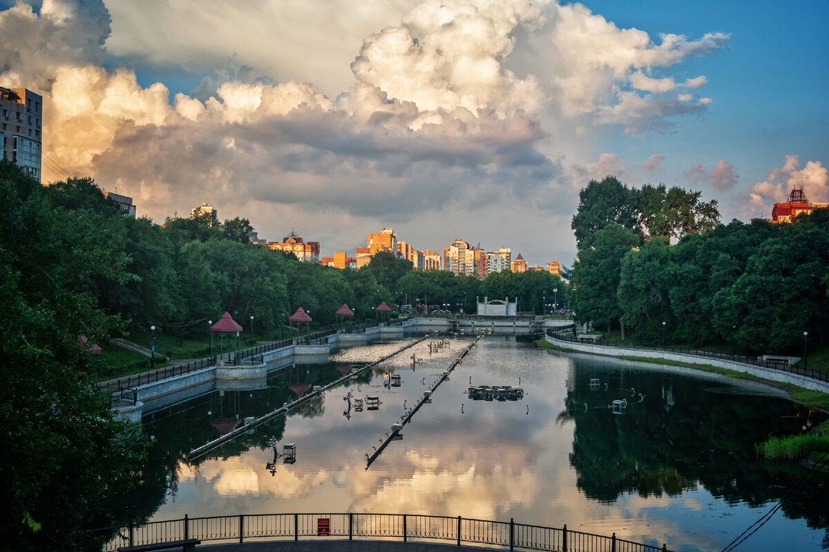 В июле 2018 года я подумал, как было бы здорово приехать в Хабаровск и прогуляться с фотоаппаратом по Уссурийскому бульвару. Всем привет! Хочу рассказать о том, как мои планы осуществились ровно пять лет спустя! Да, да, я долго иду к своим целям. =)) В июле у меня на работе выпал отпуск. Посовещавшись с семьей, было принято решение поехать в Хабаровск, потому что в домашнем регионе хорошей погоды в ближайшие дни не предвиделось. Так как поехали мы на машине, то я закинул туда свой рюкзак с фототехникой. И чтобы хоть как-то оправдать его присутствие в нашей поездке, мне пришлось в один из дней встать в 5:00 утра, и пойти встречать рассвет. Вот так и осуществился мой план, который я озвучил еще в 2018 году. Кстати, тогда мы так же приехали в Хабаровск в период моего отпуска. Дежавю. =)) Немного Википедии: “До основания Хабаровска на протяжении современного бульвара протекала река с нанайским названием Ури. В 1860-е годы реку переименовали в Плюснинку, в честь купцов Плюсниных, поселивших
