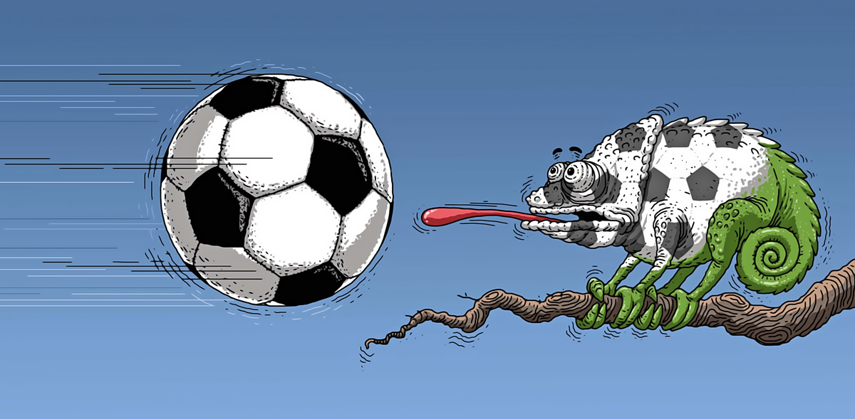 Хамелеон и футбольный мяч. Рисунок