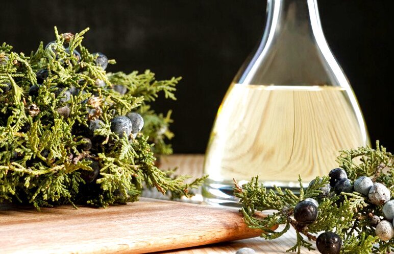 Эфирное масло можжевельника — бесцветная или желтая жидкость с резким запахом хвои. Для получения эфирного масла используют свежие ягоды темного цвета. Как ягоды, так и хвою можно приобрести в аптеке или заготовить в лесу самостоятельно. Масло из ягод и хвои можжевельника широко используют при аллергии, воспалении кожи, для лечения дыхательных путей, ОРЗ, гриппа, ожирении, гипертонии и многих других заболеваний. Можжевеловое масло укрепляет стенки сосудов, повышает их эластичность. Масло добавляют в воду, при приеме ванн, добавляют в базовое при массаже. В качестве общеукрепляющего средства принимают данное масло внутрь по одной капле 3 раза в день на такой основе, как йогурт, мед и т. п. за 30 мин до еды. Курс такого лечения 30 дней. Невероятно полезна ароматическая ванна с таким маслом. Чтобы ее приготовить, необходимо заварить 1-2 л кипятка на 200 гр. хвои и шишек. Плотно прикрыв в посуде, дать настоять, далее наполнить ванну водой (температура 37-39 градусов), и влить туда профильт