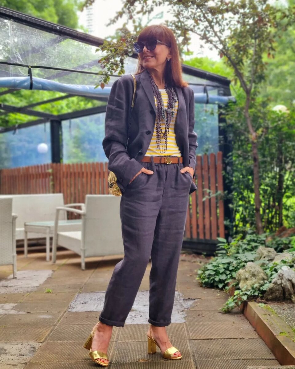 Понятие моды включает в себя сразу два направления – wow-тренды и стиль. Если укороченные штаны сейчас вышли за пределы трендов, то женщины всё ещё с удовольствием носят такие, так как они смотрятся стильно вкупе с деловым или женственным образом на каблуках. Хочу подсказать, какой должна быть гармоничная длина укороченных брюк. Достаточно расплывчатое понимание длины даёт этикет женской одежды. Он уверяет, что чем шире штанины по нижнему канту, тем длиннее должны быть брюки, соответственно, чем уже штаны, тем короче они могут быть. Универсальное правило Возьмите понравившиеся брюки, которые планируете укорачивать, и сразу наденьте на себя с той обувью, которую планируете носить с ними чаще всего. Конечно, вы будете менять обувь по случаю и погоде, но если речь о летнем периоде, это чаще открытые босоножки. Постепенно подгибайте край штанины или попросите кого-то о помощи, чтобы результат был более ровный. Как только откроется щиколотка, достаточно будет лишь слегка приподнять ткань по