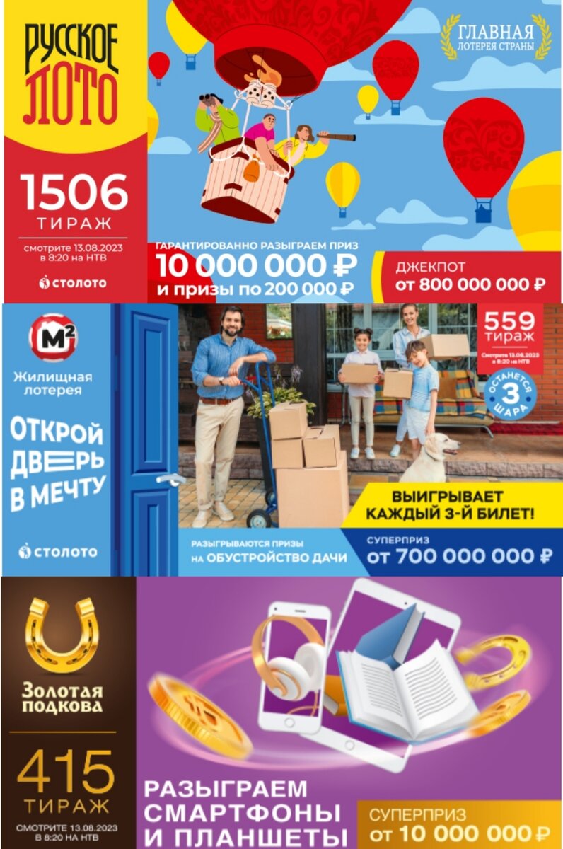 Что я выиграл в лотереи 13.08.23. Русское лото, Жилищная лотерея, Золотая подкова.