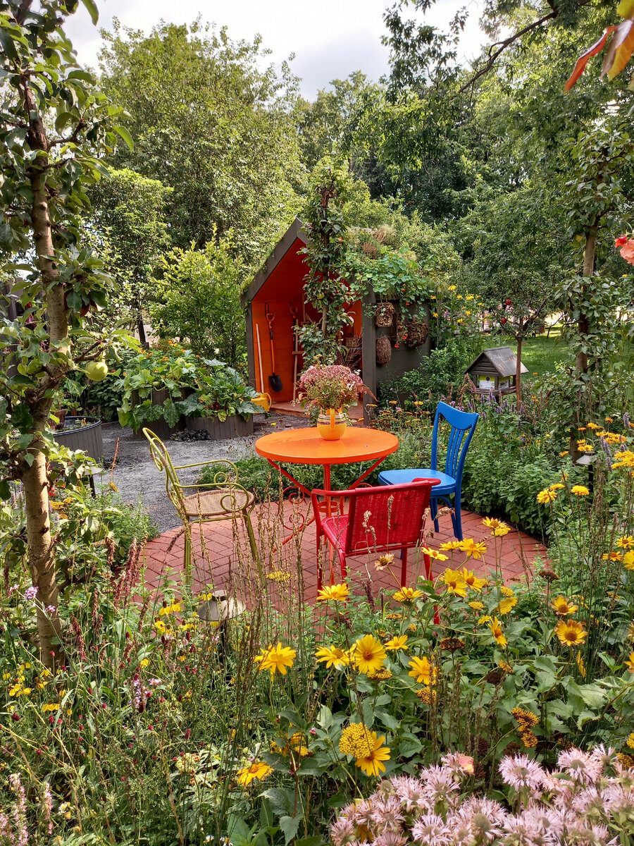 Этот фестиваль, посвящённый ландшафтному дизайну, проходит на территории ВВЦ уже не первый раз. В прошлом году я на него опоздала, но в этом хотелось всё-таки посмотреть, что он из себя представляет. Площадка фестиваля "Сады и люди"огорожена, располагается около Северного входа на ВВЦ. Билеты можно купить онлайн, льготникам- только в кассе при предъявлении льгот. Полный билет 500р. Льготный 250. По желанию можно присоединиться к бесплатной экскурсии по садовым композициям, но желающих много, толпиться не хотелось. Садовые композиции были представлены в разных стилях. Что-то ближе к классике, мило, уютно, понятно и приятно глазу: На фестивале представлено несколько композиций с водными пространствами. Особенно эффектно смотрятся по вечерам, уверена: Есть композиция, которая отличается тем, что в ней не использовались цветы. Конкурировать с цветочными очень сложно, но здесь всё настолько гармонично, что она среди пёстрых и ярких выделяется своей простотой и эффектностью: Чем-то зацепил