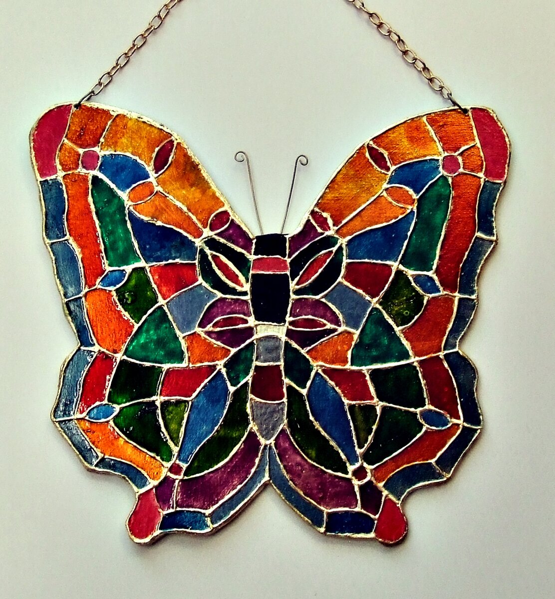 Как-то решил сделать бабочку, используя технику витража, но по металлу.