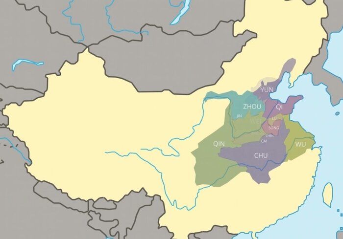 Карта к моменту начала правления вана государства Цинь Ин Чжэна (буд. Цинь Шихуанди):