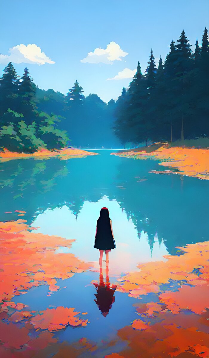Она медленно обнажила своё тело. Почти неслышно, мягко касаясь травы, направилась к озеру. Ветер нежно щекотал её кожу. Поверхность воды подарила первые ощущения парного молока. Чем глубже погружалось её тело, тем контрастнее отзывались чувства. Лёгкий холод контрастировал с теплом. И это доставляло ей удовольствие - слышать своё тело. Пальцы медленно и уверенно расекали водную гладь, а глаза завороженно смотрели на создаваемые ей волны, и молчаливую красоту вокруг. В этот момент совсем близко проплыла змея, кончиком хвоста коснувшись её ноги. Неожиданное прикосновение отправило импульс тока по её обнаженному телу. Удививляя саму себя, вместо испуга и паники она испытывала спокойствие. И совершенно не предполагая для чего, повинуясь каким-то внутренним инстинктам, склонила голову в сторону змеи в безмолвном приветствии. Словно давая знать, что от неё нет опасности. Змея, будто все понимая, на доли секунд замерла, глядя ей в глаза, и также горделиво продолжила свой путь. А она улыбалас