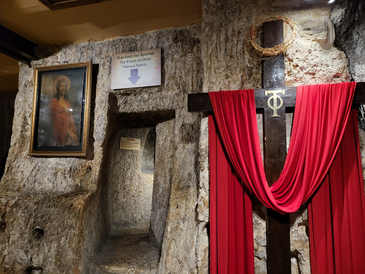 В Старом городе Иерусалима по дороге Виа Долороза пролегал скорбный путь Иисуса Христа к месту Распятия. На этом пути есть библейское место заточения Иисуса в каменных кандалах. Темница Иисуса в глубокой пещере. И рядом с ней подземная церковь. 🙏Кому помогает молитва в Темнице Иисуса