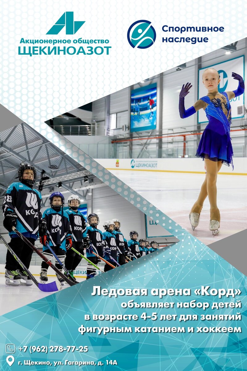 Август – заключительный месяц летних каникул и традиционное время, когда родители выбирают своим детям кружки и секции по интересам. Ледовая арена «Корд», работающая при поддержке компании «Щекиноазот» и АНО «Спортивное наследие», объявляет набор детей в возрасте 4-5 лет для занятий хоккеем и фигурным катанием. Обращаем внимание, что тренировки проводятся на бесплатной основе. Для записи необходимо иметь справку об отсутствии у ребенка медицинских противопоказаний к тренировкам! Записать ребенка или задать интересующие вопросы можно по телефону: +7 (962) 278-77-25 или в самой Ледовой арене «Корд», где вас встретят приветливые администраторы.