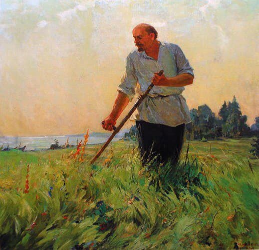 Попалось на глаза прекрасное: одна из версий того, как Ленин проводил время в Разливе. Художник Киянченко изобразил Ильича в эпоху, так сказать, развитого соцреализма – в 1975 году. В общем-то, этот художник всегда рисовал правильные картины: то Ленина, то Ленина с Крупской, то Маяковского, то будни великих строек. Ленина в Разливе он, кстати рисовал несколько раз. Вот например, творчество 1950 года. Типичный соцреализм. В 1975 году этот художник нарисовал какого-то Микулу Селяниновича – пропорции получились какие-то совсем не ленинские. Само собой, ни на одной из картин нет даже намека на Зиновьева. И если на первой этого нет по вполне понятным причинам: картина создана в 1950 году, упоминать в то время, что Григорий Евсеевич вообще-то был одним из лучших друзей Ильича – не стоило, могло плохо кончиться. Но и в 1975 году, на картине в стиле какого-то былинного соцреализма, само собой, товарищу Зиновьеву места не нашлось. Он вместе со Сталиным стал фигурой умолчания. Зато Ильич атлети