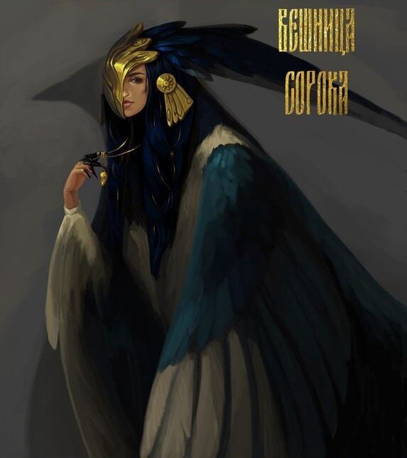 Сорока-вещица (вешница, вещейка. вещунья) - один из обычных обликов ведьмы, птица-оборотень. В полночь ведьма оборачивается через двенадцать ножей, и верхняя её половина туловища становится сорокой, а нижняя хранится в подполе. Сорока-вещица летает с едва заметным синим огоньком.