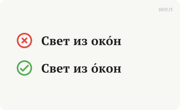 Лайк, если, будучи маленьким, вы слышали название передачи «Человек и закон» как «Человек из око́н». Проработаем эту детскую травму и разберемся с законами русского языка и окнами раз и навсегда. Правильно: из о́кон Сложности с постановкой ударения в русском языке связаны с тем, что ударение это подвижно, и по сути никаких жестких правил для него не существует. Есть определенные тенденции, которые можно отметить в ряде слов, но при этом почти всегда найдутся и исключения, которые опровергнут закономерность и будут жить по своим законам. Форма «окон» — множественное число родительного падежа существительного «окно». Это слово и разные его формы как раз хороший пример подвижности русского ударения. В единственном числе оно тут падает на второй слог: «на окно», «в окне», «за окном» и так далее. А вот во множественном перемещается на первый: «из окон», «за окнами», «в окнах». Как запомнить правильное ударение раз и навсегда и больше не ошибаться? Вспомните строчку из песни: Он мне дорог с