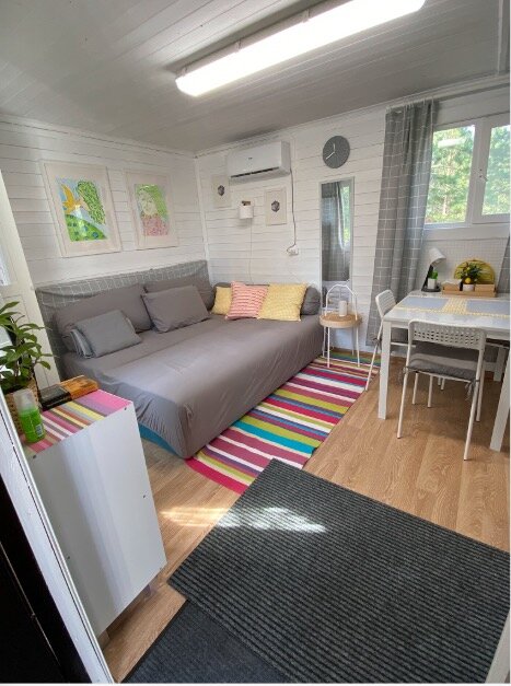 Обзаводиться диванами мы тоже не собирались, так как в гостевом домике стоял очень удобный диван, и мы думали, что "первое время" попользуемся именно им.