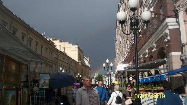 Иду по Арбату, усталый, в сомнениях и волнениях… Но впереди над Художественным появляется радуга, даже две! Двойная радуга!
