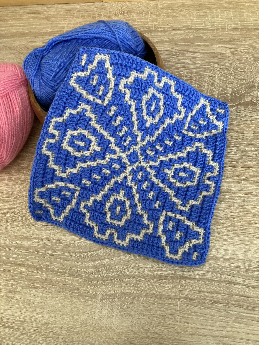 Мозаичный мотив "Кружево", связанный крючком в технике полного заполнения