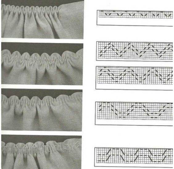 Сегодня я хочу вам рассказать о замечательном виде декоративно-прикладного искусства - декоративной сборке. Мы уже с вами изучали буфы, которые собираются по определенной схеме. Сборка тоже происходит по схеме. Это пример схем сборки края изделия. На самом деле их очень много. И самую верхнюю схему я захотела опробовать в кукольном масштабе 1:6 на сборке верха лифа в нижней рубахе в стиле ампир. Конечно, в таком мелком формате всю красоту не видно, но отличия от просто кулиски все же есть. Преимущества такого способа сборки налицо. Это и красивый край, и ткань в месте сборки не такая плотная как при сборке на кулиске, ведь нет дополнительной строчки, которая делает ткань жестче. Декоративная сборка бывает и со сложными схемами, которые напоминают схемы для вышивания. Вы только посмотрите какую красоту творят мастера на человеческой одежде. В результате стягивания ткани получается выпуклый узор, нарисованный нитками и вашим воображением. Так, с помощью всего лишь нитки с иголкой и,