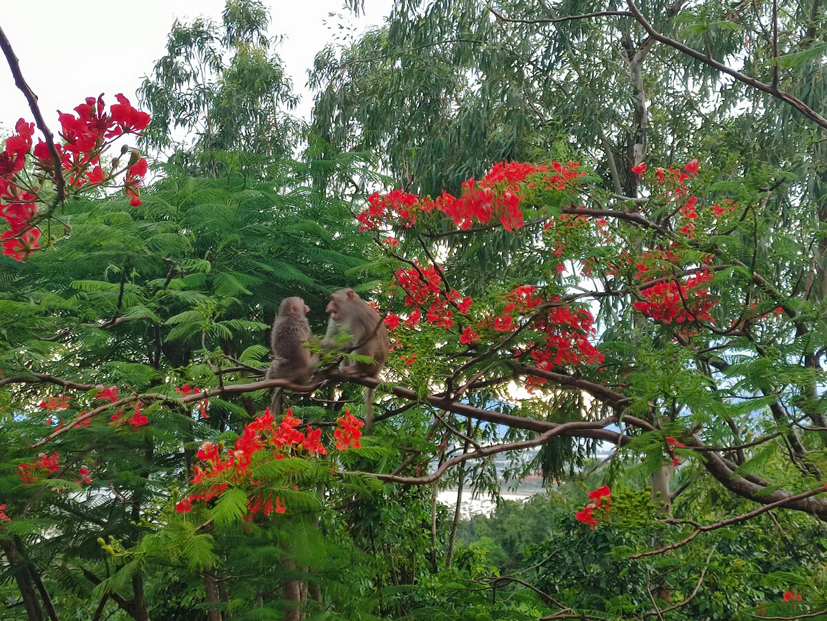 Одну из главных достопримечательностей Дананга, белоснежную 67-метровую статую богини милосердия и сострадания Гуань Инь, называют почему-то «Леди Будда», видимо, подчёркивая значимость этой богини во Вьетнаме. Леди Будда установлена на полуострове Сон Ча, на территории пагоды Линь Унг Бай Бут. Из популярного туристического района Ми Ан до пагоды можно добраться на такси минут за 15. Храмовый комплекс находится на холме вдали от шумных улиц. Получается, что перед пагодой расположены город и море, а за ней — горы и джунгли, то есть стоит она на границе двух разных миров — городской среды и величественной природы. Пагода Линь Унг входит в тройку самых популярных туристических мест города, но несмотря на толпы туристов, здесь чувствуется умиротворение и единение с природой. Последнему очень способствует большое количество обезьян, снующих по крышам строений, мощёным тротуарам и пальмам. Приматы, как мне показалось, тут дружелюбнее, чем на острове обезьян в Нячанге. Видимо, потому что их т