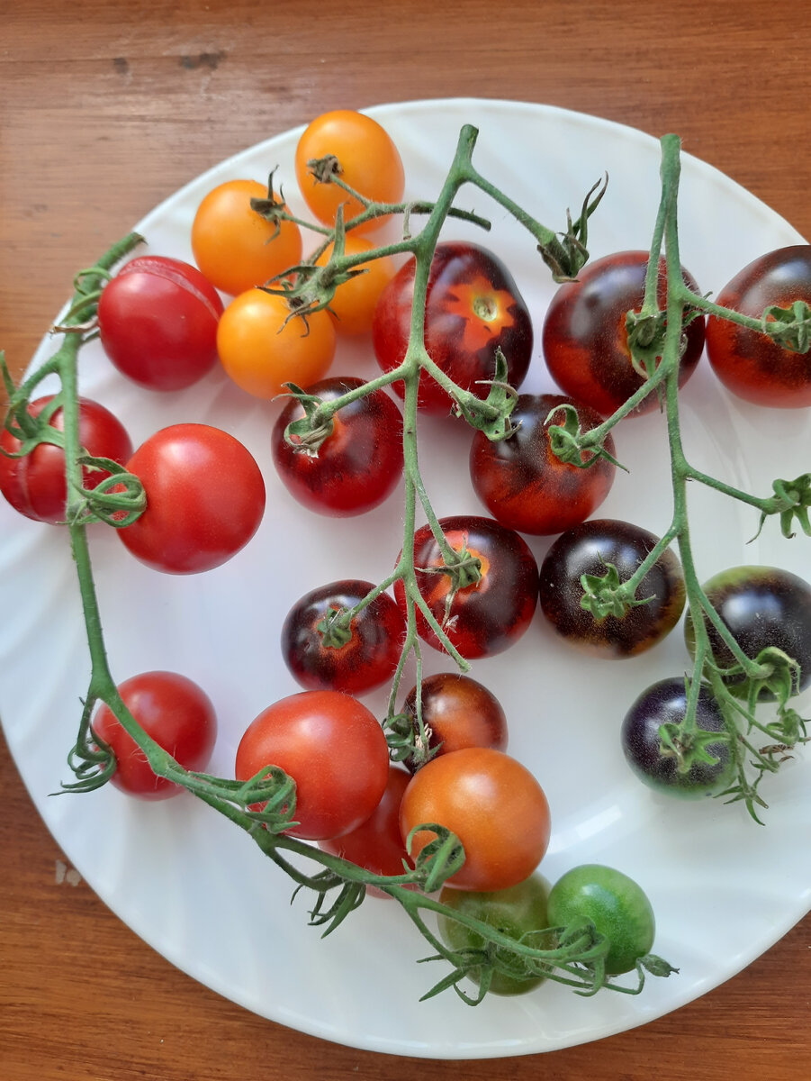 Итак, из овощей у меня огурцы, помидоры, помидорки черри, патиссон. Всё с огорода родственников.