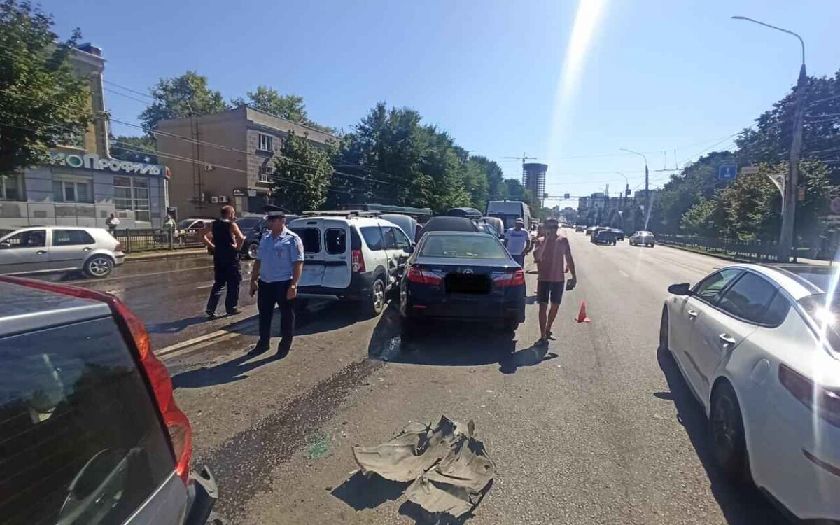В Воронеже сотрудники полиции устанавливают обстоятельства массового ДТП, сообщили в ГУ МВД по региону 16 августа. Авария произошла сегодня примерно в 12.30 у дома № 33 по Московскому проспекту. Здесь 65-летний житель Липецкой области на Nissan Note столкнулся при перестроении из ряда в ряд с Toyota Camry, за рулем которой находился 46-летний воронежец. От удара «Ниссан» опрокинулся на бок, но по инерции врезался еще и в «Шевроле Нива», которой управлял 34-летний житель Чеченской Республики. В свою очередь «Шевроле» ударился о Ford Focus и Toyota RAV4. А «Тойота Камри» после удара выехала на встречную и столкнулась с «Лада Ларгус» и Hyundai. На данный момент полиции известно, что в аварии пострадала 30-летняя пассажирка из «Шевроле Нива», которую доставили в больницу. Из-за ДТП на Московском проспекте образовалась огромная пробка. Сейчас здесь работают сотрудники Госавтоинспекции, которые устанавливают обстоятельства ДТП и в ручном режиме регулируют движение.