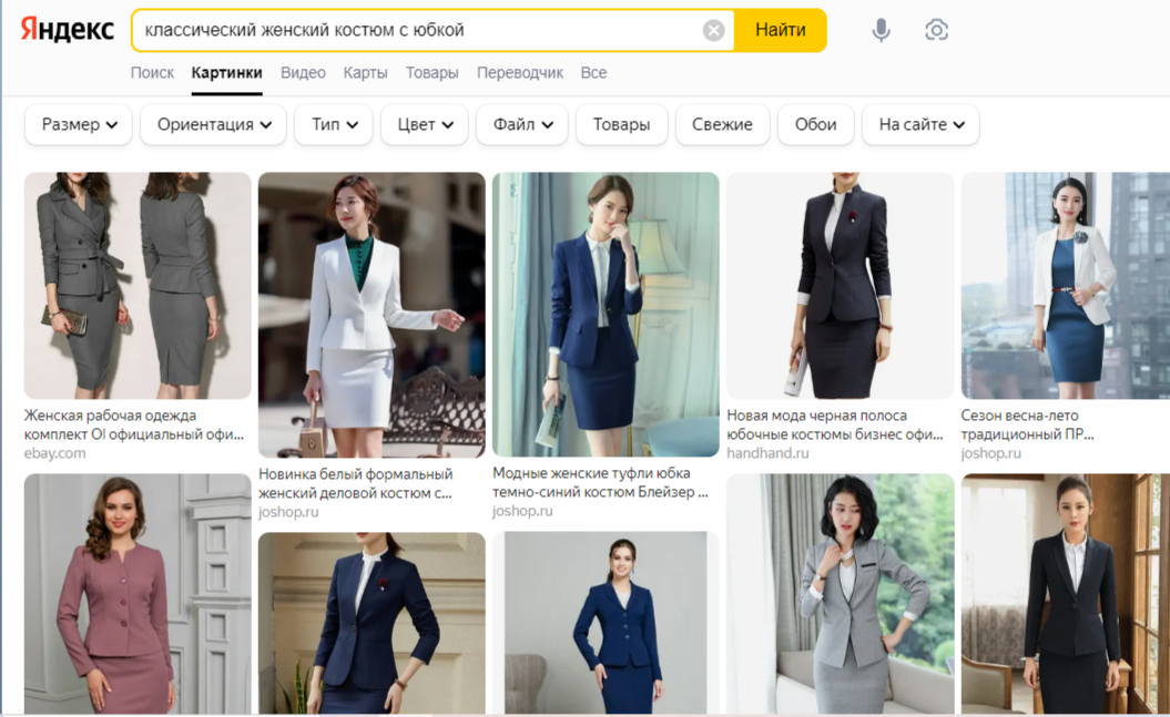 Начало Если в литературе и музыке критики определились с тем, что такое классика, то с модой все сложнее. Если бы в моде каждый год классическое было бы одним и тем же, как бы они все это продавали? Поэтому мода меняется постоянно. Мое предположение – каждая женщина считает «классикой» что-то свое, то, что ей казалось красивым (может, недостижимо красивым) в ее лучшие годы. Давайте обратимся к Яндексу – никто не накопил столько данных о русскоязычных людях (их запросах, вкусах, предпочтениях), как Яндекс. Что же он нам выдаст? Классический женский костюм 25 лет назад такой женский костюм означал, что его хозяйка выиграла эту жизнь и работает в хорошем офисе. Сейчас в лучшие офисы одеваются совсем не так. Или вообще не ходят в них. А так одеваться может кандидатка на должность помощницы. Тут все слишком для нашего времени: слишком строго, закрыто, обтянуто, скучно. Такой костюм держит в тонусе. А сейчас время такое, что к людЯм наконец-то стали помягче. Если не хотите выглядеть ка