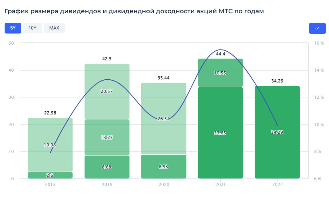 Дивидендная доходность компании за 2022 год составила 9,9%, что эквивалентно 34,29₽ на акцию.