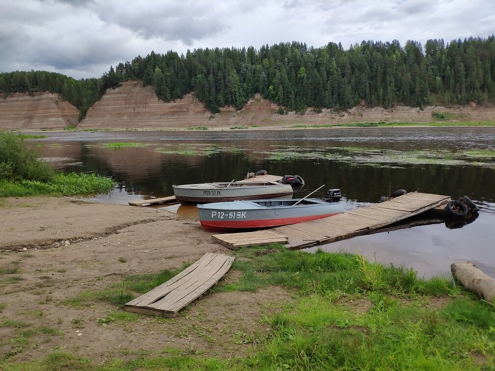 Пристали мы у того самого интересного места. Пристань. А также бревна, прибитые течением.
