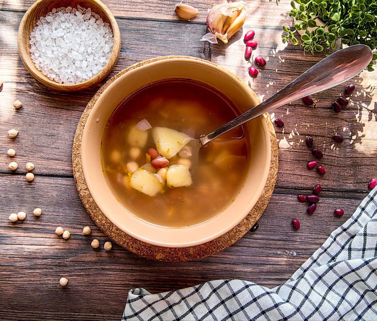 Конечно, при желании можно сделать зажарку, но мне кажется, что в этом варианте без только преображает вкус супа. Фасоль можно взять как белую, так и красную или и тут и ту, тогда получится более колоритно. Для приготовления понадобится: Бульон (любой) - 2,5 л