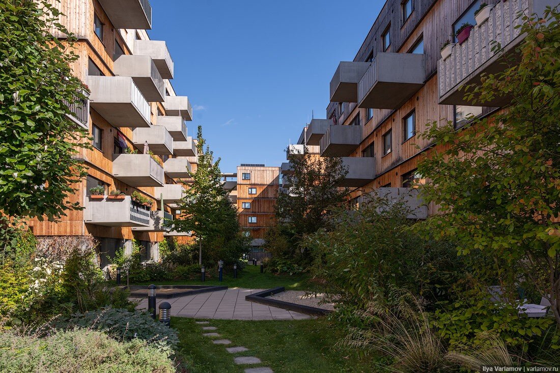 02. Это главная звезда на нашем архитектурном празднике – деревянный небоскрёб. Проблема в том, что получилась хрень какая-то... Бывает. То есть если не знать, что здание деревянное, пройдёшь мимо и не заметишь. Могли бы поинтереснее сделать.