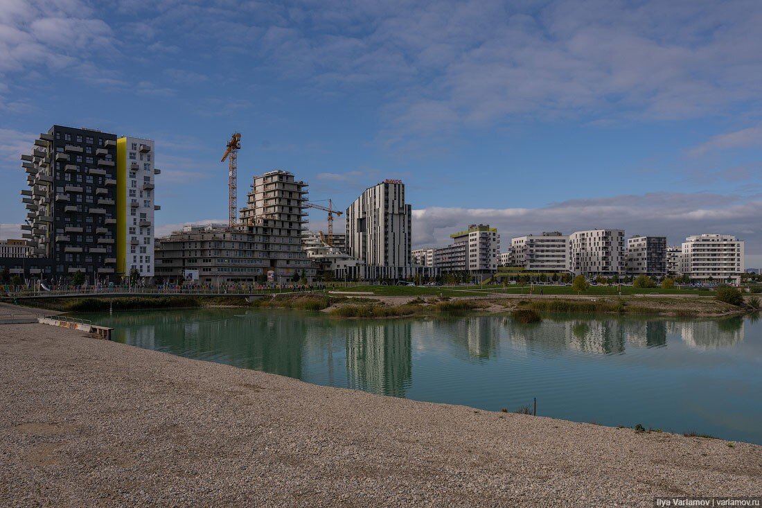 Итак, друзья, спустя пару лет я решил вернуться в один из лучших жилых районов мира. Зеештадт Асперн ("Озёрный город Асперн") – это большой район на востоке Вены. Его строят в три этапа, и готов он будет только к 2028 году. В общей сложности здесь будет построено жильё для 20 000 человек. При этом девелопер обещает, что в районе будет создано столько же рабочих мест.