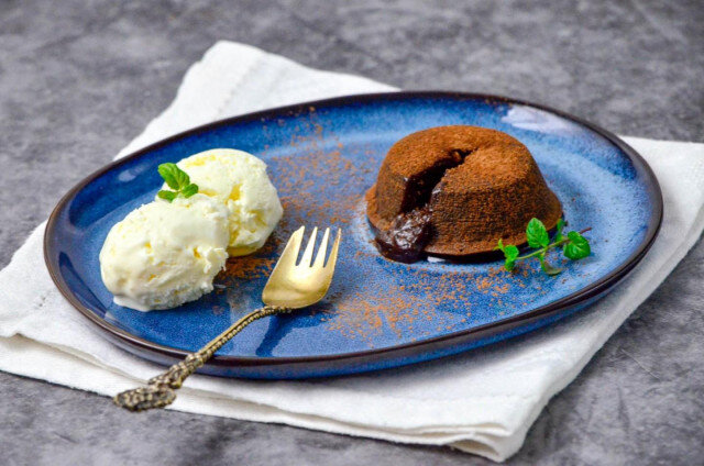 Ингредиенты: Тёмный шоколад-100 гр Сливочное масло-50 гр Яйца-3 шт Сахар-50 гр Пшеничная мука-75 гр Рецепт: 1.Как сделать шоколадный фондан? Подготовьте и отмерьте продукты. Шоколад и масло берите только хорошего качества, от их вкуса зависит вкус десерта. 2.Шоколад, поломанный на кусочки, и масло положите в миску. Поставьте на огонь греться воду в кастрюле. Мы будем делать водяную баню. Это значит, что миску с шоколадом надо будет поставить на кастрюлю с кипящей водой. Поэтому выбирайте посуду соответствующего размера и не из пластика. Вода не должна доходить до дна миски. Растапливаем шоколад и масло, помешивая их лопаткой, до однородной массы. 3.Пока топится шоколад, взбейте яйца с сахаром. Взбивайте миксером, до образования пышной светлой массы. 4.Добавьте во взбитые яйца муку, аккуратно перемешайте. 5.Добавьте растопленный шоколад. Он должен слегка остыть, но не стать холодным. Перемешивайте аккуратно венчиком до однородной массы. 6.Форму, в которой вы будете печь фондан, см