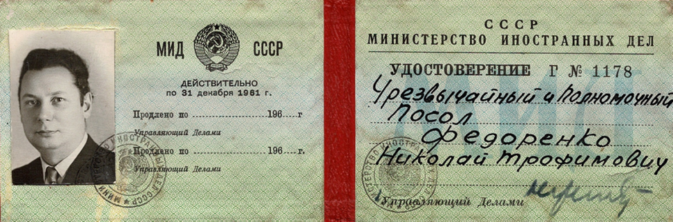 В 1958 – 1962 году послом Советского союза в Японии был Николай Трофимович Федоренко (1912 – 2000).
