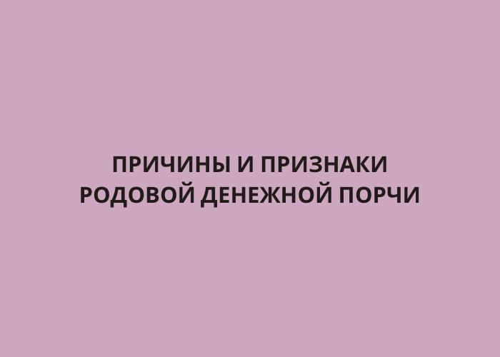 Родовая денежная порча. Признаки и причины финансовых трудностей Сегодня хочу поговорить о денежной порче — порче ресурса финансов. Денежная порча, как и любая другая, может быть родовая, кармическая и по этой жизни. Признаки первых двух могут быть несколько стерты и проявляться как хроническая болезнь. Порча по этой жизни обычная более тяжело и ярко проявлена. Начнем с определения. Магическая порча — это вредоносные магические приемы, используемые для причинения ущерба здоровью, благополучию, благосостоянию или жизни человека и его потомков. Она всегда осознанна и предполагает контакт с объектом. Задача порчи — разрушить то, что было изначально. В отличие от проклятия, порчу не может сделать каждый человек, здесь нужно магические навыки, знания и так называемая сила. Конкретно денежная порча направлена на ослабление денежного потока. Денежная порча может быть по этой жизни, но чаще всего они является следствием кармической или родовой. Последняя — это та, которую когда-то по
