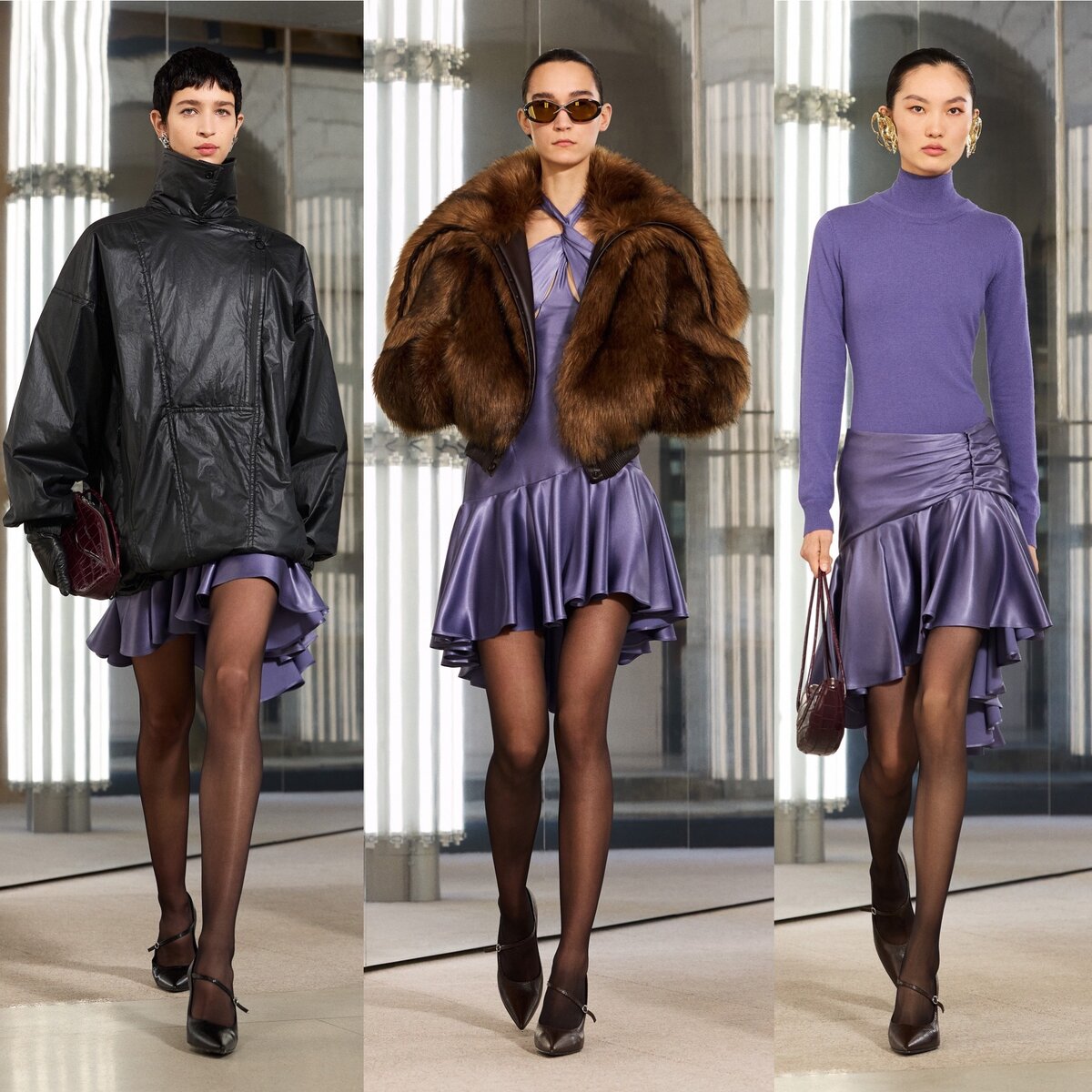 Крутые пуховики оверсайз, похожие на халаты, в которые хочется укутаться, мягкая глянцевая кожа, асимметричные юбки, строгие водолазки сразу привлекают внимание благородной простотой. Лаконичный силуэт с выразительными деталями не скучен и весьма носибелен. Вечерние варианты привлекают великолепной отделкой. Особенно круто смотрятся длинные перчатки.