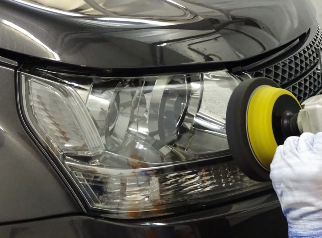 С помощью специальной шлифовальной машинки или её заменителей — дрели или шуруповёрта с насадками для полировки — можно заметно ускорить процесс, особенно когда на стекле есть глубокие царапины или сколы, требующие шлифовки. Однако и цена ошибки при работе с электроинструментом будет намного выше — есть риск перегреть пластик и испортить фары