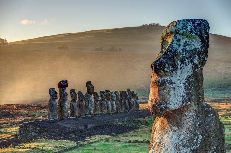 Остров Пасхи в Чили считается одним из самых удаленных обитаемых островов в мире. Он находится на расстоянии около 4000 км от ближайшего материка (Южная Америка). Местное название Рапа-Нуи стало известно всему миру после того, как в 1722 году в Пасхальное воскресенье там высадился голландец Роггевен. Но мир знает его не по удаленности и не по названию, а по огромным статуям моаи, которые тянутся вдоль берега и вглубь острова. Кто и с какой целью создал 500-летние статуи моаи, выдавленные из вулканического пепла, до сих пор остается загадкой. Коренные полинезийцы верят, что в статуях моаи заключена сила предков, а некоторые люди до сих пор не перестают спорить об истории появления статуй моаи. Некоторые даже считают, что остров Пасхи - это неуловимый континент, на котором тысячелетиями развивалась неизвестная цивилизация, а затем исчезла в море. Однако ученые не поддерживают эту теорию и утверждают, что остров Пасхи раньше был не намного больше, чем сейчас. Они также утверждают, что когда-то он был покрыт густыми лесами. Сегодня на острове почти нет деревьев, но, по-видимому, древесина широко использовалась при изготовлении полозьев и лесов для транспортировки огромных статуй.