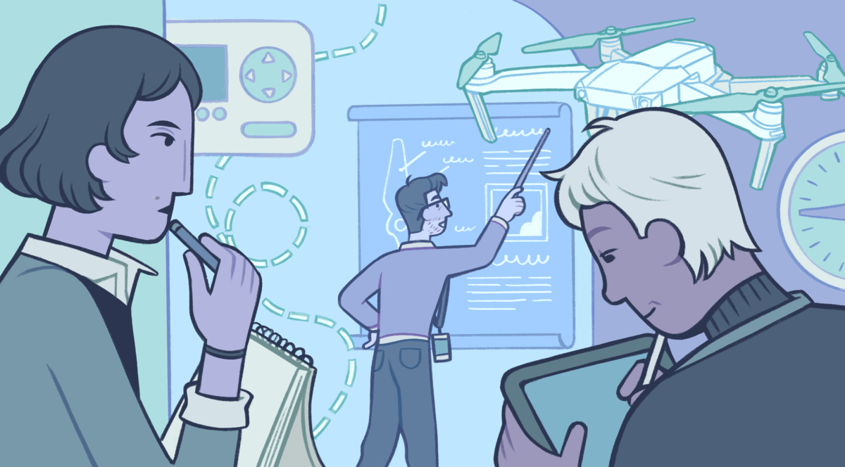 - Работать с полезной нагрузкой. Просто управлять дроном недостаточно, важно решать задачи бизнеса. Для этого нужно уметь красиво строить кадр для съемки или управлять тепловизором, чтобы найти пропавшего ребенка, справляться с датчиками, которые видят подземные залежи металлов, уметь быстро разобраться в новых устройствах. Так внешний пилот превращается в программиста полета.