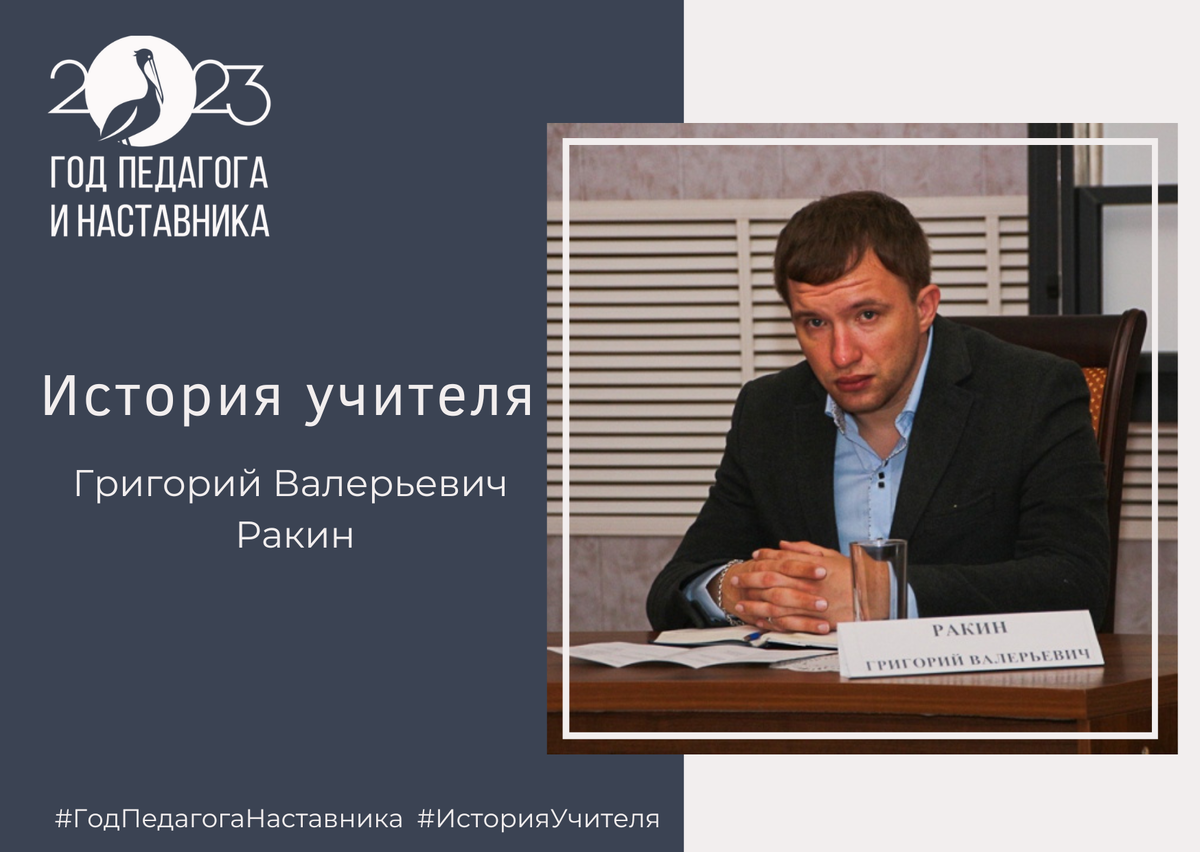Сегодня расскажем о Григории Валерьевиче Ракине, победителе регионального этапа Всероссийского конкурса «Учитель года – 2019», преподавателе физики средней общеобразовательной школы имени А. Джанибекова. Его педагогический стаж составляет 9 лет, однако к решению связать свою жизнь со сферой образования наш герой пришел не сразу.