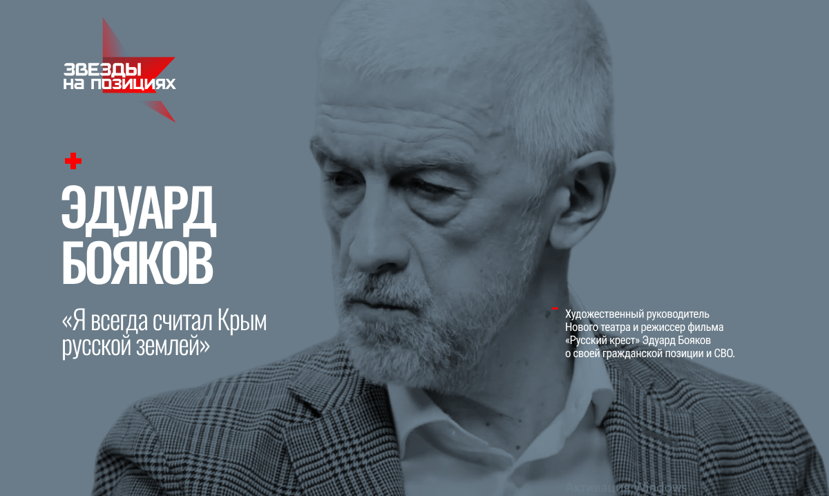 Художественный руководитель Нового театра и режиссер фильма «Русский крест» Эдуард Бояков о своей гражданской позиции и СВО. - В 2014 году я подписал письмо в поддержку позиции Владимира Путина по Украине и Крыму, и никакого шока, вопреки некоторым мнениям, это не вызвало. Во-первых, никакой другой политической позиции я не выражал, во-вторых, разница между моей позицией в 2012 году и в 2014 году намного меньше, чем разница между Пушкиным, совершенно либеральным западником, и Пушкиным, автором «Истории Пугачева». Как и любой живой человек, я менялся и развивался. - Надо понимать, что в 2012 году в принципе не было либеральной позиции, это еще не было артикулировано. Собственно, тогда и патриотического дискурса в нынешнем измерении не было. Конечно, был Проханов, была газета «Завтра». - Достаточно быстро после первых месяцев Болотной я разочаровался в эстетико-ориентированных течениях, и Болотная, на мой взгляд, оказалась предвестником событий в Крыму. Именно после этих событий начался