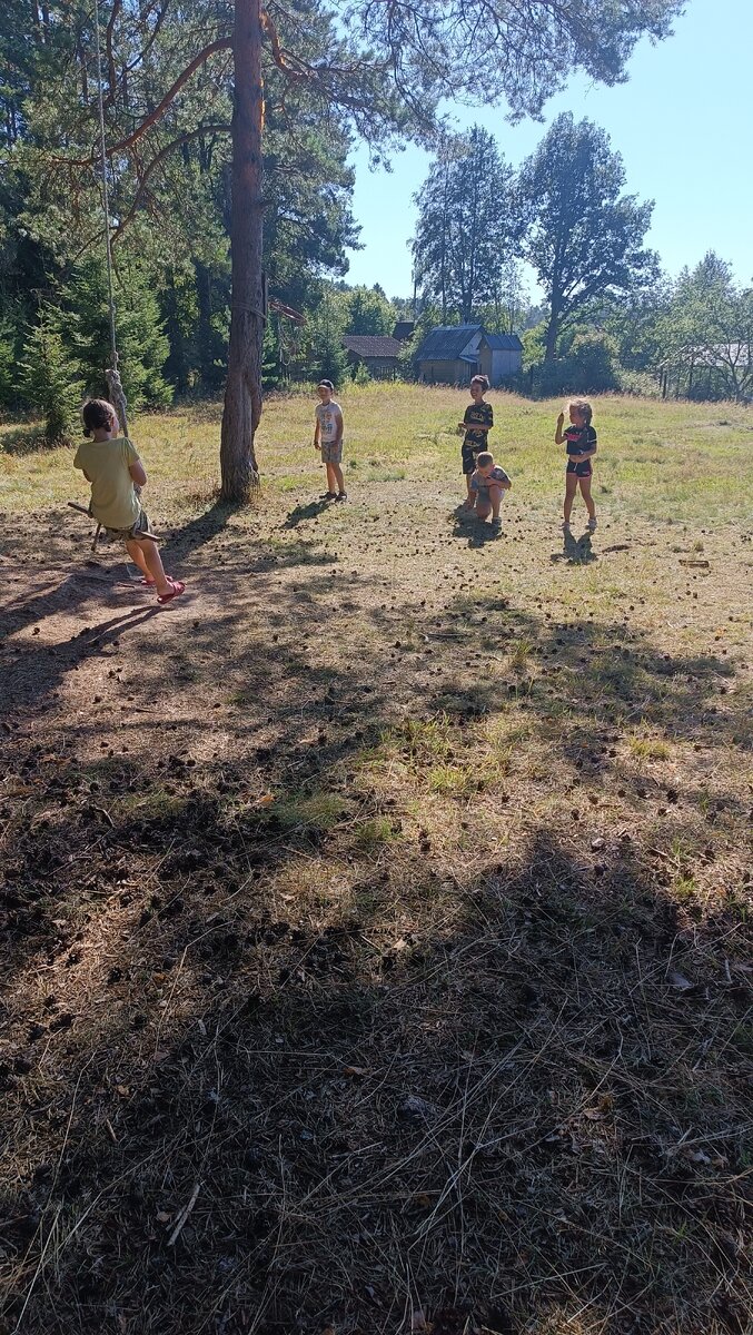 Песок летел в глаза. Те слезились. Бой был с самом разгаре. А начиналось всё так мирно. —Эй, уходи это не твои качели! —маленький мальчик выглядел решительно. Аделина упорно игнорировала его. —Я только села! Малыши были в растерянности. Самый бесстрашный выкрикивал оскорбления. Эти детки такие слова знают. Аделя продолжала качаться. —Полин, покачай! —Нет. —Ну, Полин, пожалуйста! —Ладно—я нехотя запустила её в космос. Разумеется хотелка моей сестры не была удовлетворена. Я хотела уже удалиться с поля, но ситуация предвещала, что-то интересное. Я прислонилась к дереву и с улыбкой наблюдала фильм разворачивающейся на моих глазах. Дети не уходили и с каждым разом всё настойчивей гнали Делю с тарзанки. Первая шишка. Промах. Ещё одна. Мимо. Деля смеётся, уворачивается. Детям тоже весело, их попытки безуспешны. Но их броски становятся всё точнее. Наблюдать весело, только попкорна не хватает! Кристиан что-то шепчет на ухо Владику. Нина стоит в стороне. Самая младшая. Деля на та