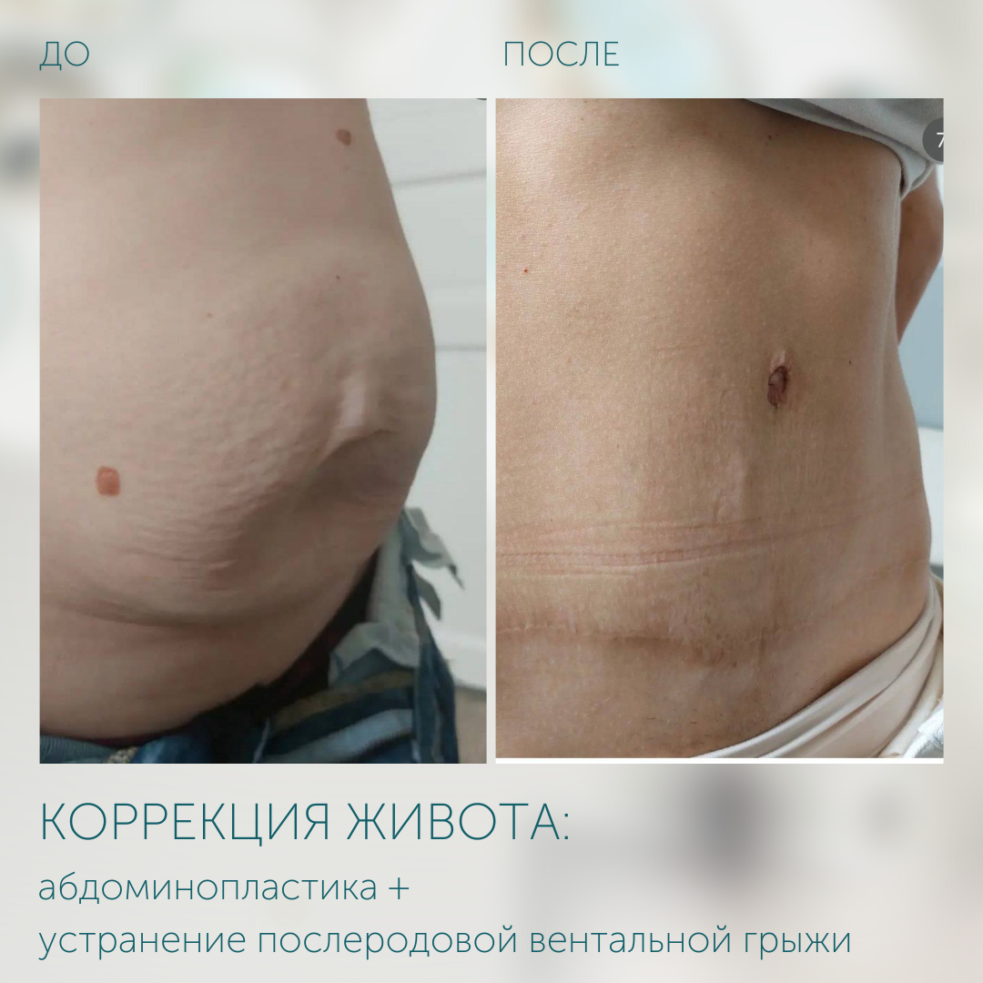 Беременность — серьезное испытание для женского организма. К нам обратилась молодая пациентка, тело которой претерпело сильные изменения после рождения ребёнка: образовалась пупочная грыжа и растянутая кожа живота. Наши врачи часто работают в тандеме, операцию пациентке выполняли сразу 2 хирурга: Яковлев П.Н. (устранение пупочной грыжи) и Хатри А.Р. (абдоминопластика). Хирурги поработали с кожей (в том числе удалили крупные родинки), жировой тканью, мышцами и белой линией живота.
