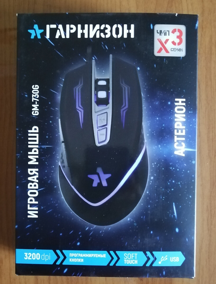 Думаю многим из тех кто пользуется пк, либо ноутбуком, не раз приходилось менять мышь. И конечно же вы замечали, что каждая имеет свои особенности. По разному лежит в руке, отличается количеством кнопок. Кому-то привычнее и удобнее беспроводная. А кто-то наоборот предпочитает проводные мыши. Всё зависит от вашего ежедневного сценария пользования. Я же хочу вас познакомить с компьютерной мышью Гарнизон GM - 730G Астерион. Мне кажется что она подойдёт для всех. Почему? Сейчас я об этом и расскажу. Уже сама упаковка обращает на себя внимание. Можно получить представление о внешнем виде мыши и главной её фишке - использование тут чипа X третьей серии. Это означает, что при зажатой клавише курсор на экране монитора не будет дрожать, исключаются паразитические колебания. Очень нужная функция, особенно для геймеров. Но не только им эта мышь будет интересна. Как я уже говорил она подходит всем. И прежде всего своим удобством охвата. Размер мыши, её изгиб таков, что даже при большой или ср