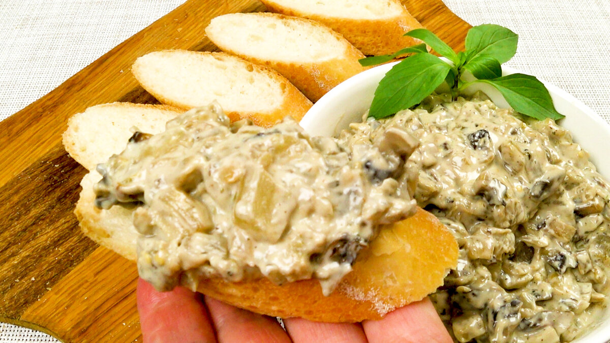 Очень вкусная закуска на праздничный стол и на каждый день. Можно намазать на батон к чаю или подать гостям, наполнив тарталетки или чипсы из лаваша. Приготовление: Баклажаны очистить от шкурки. Лук, грибы и баклажаны нарезать мелкими кубиками. На среднем огне обжарить лук до золотистости, примерно 5 минут. Добавить грибы, посолить и жарить до испарения жидкости, примерно 3 минуты. Добавить баклажаны и готовить до мягкости в течении 7 минут. Посолить, поперчить и добавить итальянские травы. Вылить сливки. Тушить на среднем огне 3-4 минуты. Баклажаны впитают сливки и станут сочными. Добавить плавленый сыр и готовить, помешивая, пока он не расплавится Закуска готова. Ингредиенты: 2 небольших баклажана 1 большая луковица 5-7 шампиньонов 100 мл сливок 2-3 ст. л. плавленого сыра 0.5 ч. л. итальянских трав соль по вкусу перец по вкусу растительное масло