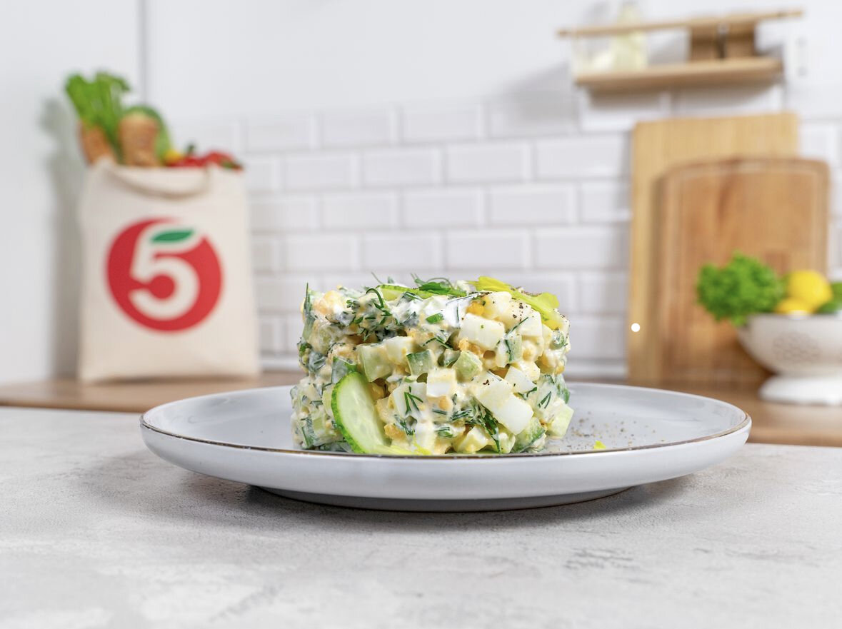Ингредиенты: Огурец - 1 шт. = 100 г Куриное яйцо - 1 шт. = 60 г Укроп - 0,12 пучок = 1,5 г Зеленый лук - 0,12 пучок = 6 г Для заправки: Майонез - 0,5 ст.л. = 12,5 г Сметана - 0,5 ст.л. = 12,5 г Соль - по вкусу Черный перец молотый - по вкусу ____________________________ Приготовление: 1 ШАГ: Сварите яйца вкрутую: опустите их в кастрюлю с холодной подсоленной водой, плотно закройте крышку. Варите на среднем огне 8-10 минут с момента закипания воды. Затем остудите и очистите. Нарежьте кубиком. Таким же образом нарежьте огурцы. Старайтесь, чтобы яйца и огурцы получились примерно одинакового размера. Измельчите зеленый лук и свежий укроп. Соедините ингредиенты в салатнике. 2 ШАГ: Для заправки смешайте майонез со сметаной, не забудьте посолить и поперчить по вкусу. Заправьте салат соусом и перемешайте. 3 ШАГ: Подавайте салат на стол сразу после приготовления, пока огурцы не пустили лишний сок. ПРИЯТНОГО АППЕТИТА😋