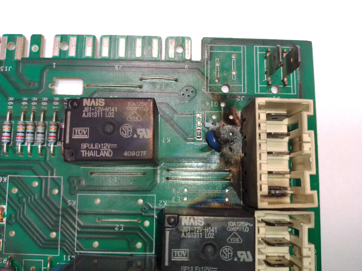 ребята спасибо кто подписался на дзен канал ! а я расскажу вам следующий ремонт . принесли вот такой модуль клиент с другой мастерской говорит нужен новый модуль сколько будет стоить? я а с этим то что ? говорит не подлежит восстановлению и в мастерской за такой модуль зарядили 5000 тыш вместе с прошивкой ! я замеряю процессор на сопротивление как он себя чувствует ?! и говорю если все получится то 1800 руб ремонт смотрю настроение поднялось у него ! ну короче бахнул симистор по убл стандартная процедура заменил симистор и варистор так как и его зацепило почистил прогар и запустил на стенде все заработало но предупредил что надо заменить устройство блокировки люка а то в следующий раз модуль не спасем ! ремонт удачный машинка стирает !