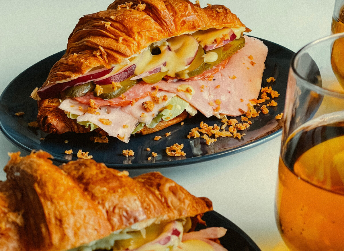 Все дело, конечно же, в начинке. Можно сделать по классике круассан с ветчиной 🍖 и сыром 🧀 , или же с красной рыбой 🐟 . Но я нашла вариант поинтереснее, особенно он понравится мясоедам.🥩 Кстати, обещала рассказать предысторию об этих круассанах на фотографиях, и почему я вообще решила приготовить именно такой завтрак. Мы с подругами были в кофейне и как раз обсуждали мой ЧЕЛЛЕНДЖ с завтраками, неожиданно к нам подошла бариста и попросила удалиться из заведения. Нет, не из-за того что мы громко общались и мешали другим посетителям, к слову, в кафе уже не было никого кроме нас 🤷🏽♀️ Как оказалось, кофейня уже закрылась и нас любезно попросили, извинились и вручили подарки в виде тех самых КРУАССАНОВ. Тут же и родилась идея «я с этих круассанов и начну свой челлендж». Итак, к начинке: • Буженина • Сервелат • Корнишоны, у меня «Дядя Ваня» • Творожный сыр • Лист салата • Красный лук • Жареный лук • Горчичный соус Вот и все! Такое сочетание продуктов идеальное! А рецепт соуса