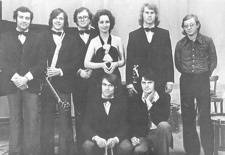 — Начиная с 1974 года Ирина Аллегрова работает в системе "Москонцерта". А именно— в эстрадном оркестре под руководством известного дирижера Левона Мерабова, с которым в свое время познакомилась еще в Баку. В состав оркестра входит, помимо всего прочего, еще и вокальный ансамбль "Вдохновение" из шести человек, одним из участников которого, собственно, и становится молодая певица. Но спустя какое-то время коллектив Мерабова распадается. Что же касается чисто житейских, бытовых проблем, то тут все точно так же, как у всех других, кто приезжает покорять Москву — нехватка денег, съемные квартиры, неустроенность и все тому подобное.