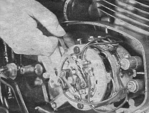 В дальней поездке на мотоцикле «Ява-350» модели «634-01» неожиданно отказал генератор. В результате разборки и прозвонки при помощи лампочки и аккумулятора я обнаружил, что какая-то из обмоток якоря пробита на «массу», из-за чего генератор давал недостаточное напряжение. Внешним осмотром место замыкания найти не удалось, и я поступил следующим образом. Обмотав коллектор якоря медным проводом (соединив таким образом все обмотки якоря параллельно), подключил мощный автомобильный аккумулятор 12 В между коллектором и сердечником якоря. Неисправная обмотка быстро нагрелась, задымила и заискрила в месте замыкания — там, где обмоточный провод изгибается и входит в паз сердечника. Дальше — уже дело техники. Отодвинув провод от острой грани сердечника, изолировал провод и залил место ремонта лаком для ногтей. Генератор заработал. С этим якорем я благополучно вернулся домой, езжу до сих пор. уже более 5000 километров, и не замечал ни перебоев, ни каких-либо отказов в работе генератора.