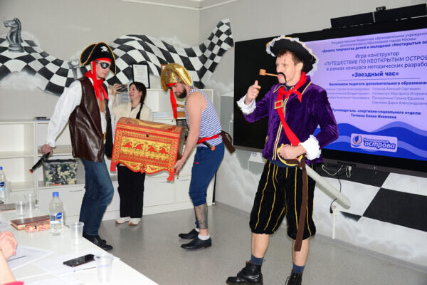 Для представления своих работ педагоги использовали огромный арсенал выразительных средств, ведь надо было доказать жюри, что именно их проект самый лучший. Когда под звуки авантюрной музыки в зале появились пираты со старинным сундуком, все сразу поняли, что сейчас начнется что-то мистическое и незабываемое.